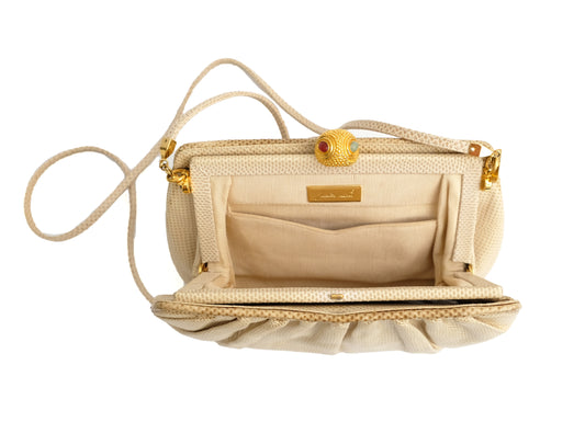 Judith Leiber Vintage Evening Bag in Cream Snakeskin with Jewelled Clasp
