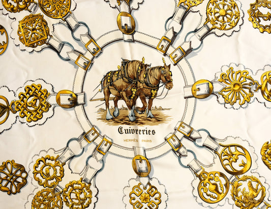 Hermès Vintage Equestrian Silk Scarf, "Cuivreries", 1985