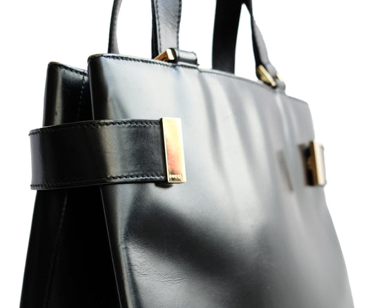 Gucci Vintage Handbag in Black Leather with Detachable Shoulder Strap