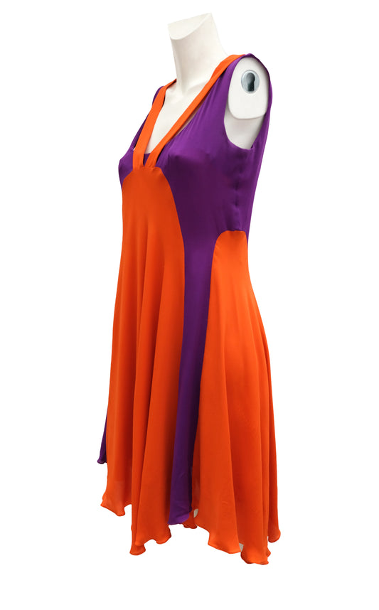 Eley Kishimoto Sun Dress in Orange and Purple Silk, UK12-14