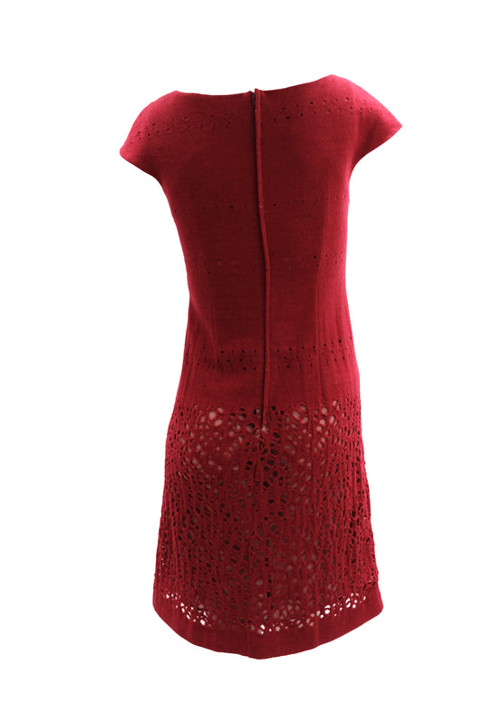 Sybilla Vintage Cut Out Shift Dress in Cherry Red Wool, UK8