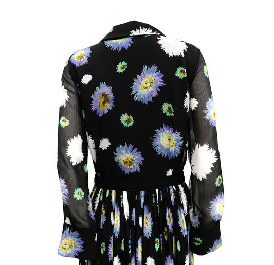 Kenzo Floral Print Chiffon Dress with Micro Pleats UK10