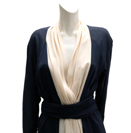 Karl Lagerfeld Vintage Navy and Cream Chiffon Decolleté Dress, UK10
