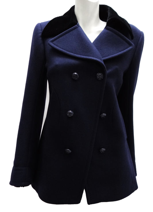 Alexander McQueen Smart Navy Pea Coat with Velvet Collar, UK8-10