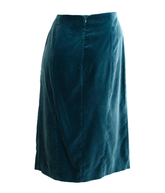 Carven Gathered Apron Skirt in Teal Velvet, UK12-14