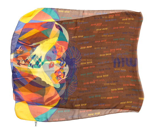 Miu Miu Graphic Logo Chiffon Scarf, L