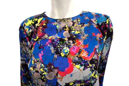 Erdem Round Neck Top in Multicoloured Printed Silk, UK10