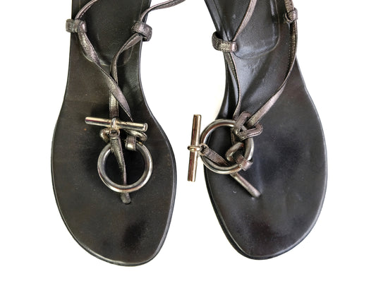 Hermès Vintage Thong Sandals with Kitten Heel, EU38.5