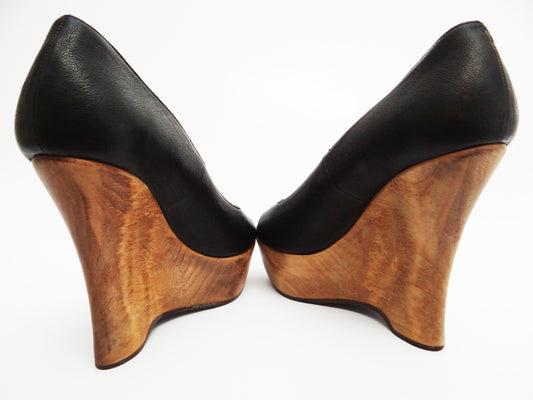 Lanvin Peep Toe Sculpted Wooden Wedges, UK4