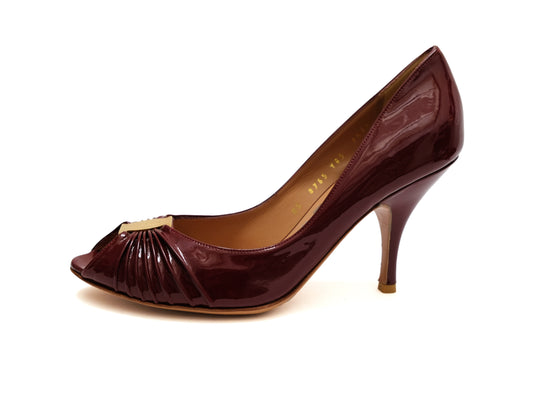 Salvatore Ferragamo Peep Toe Shoes in Burgundy Patent Leather, UK5.5