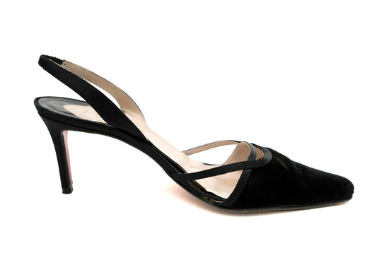 Christian Louboutin Vintage Black Velvet Slingbacks, EU39.5