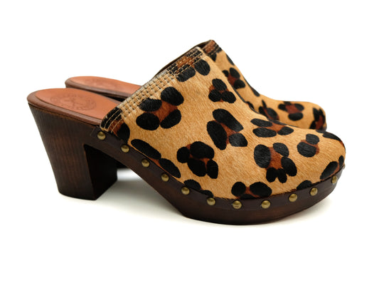Penelope Chilvers Clogs in Leopard Print Pony Skin, EU41