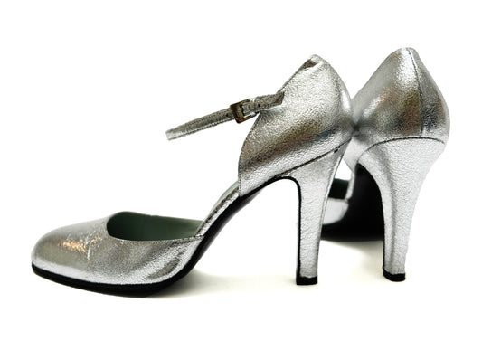 Salvatore Ferragamo Peep Toe Shoes in Silver Leather, UK5.5
