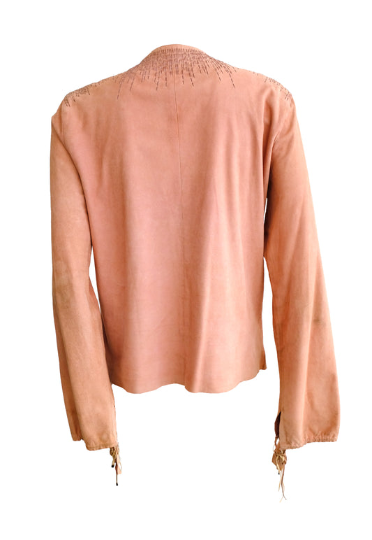 Gucci Vintage Tunic Top in Pale Pink Suede, Embroidered, UK8-10