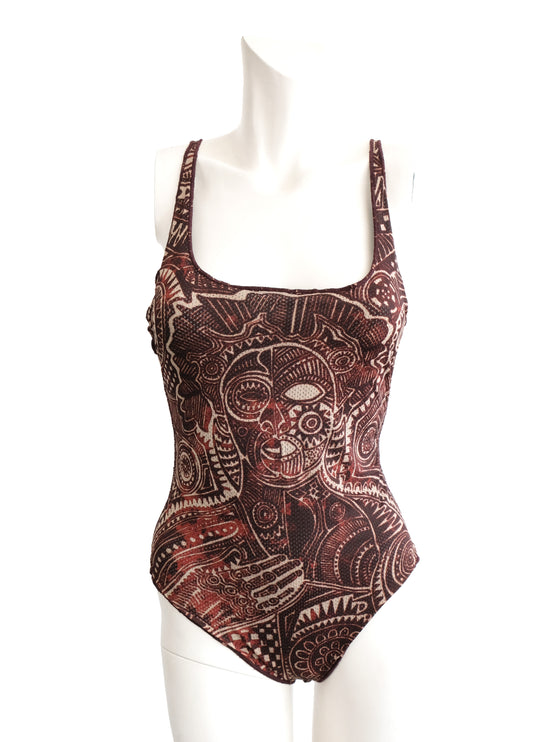 Jean Paul Gaultier Maille Vintage Swimsuit / Body in Tribal Tattoo Print, M-L