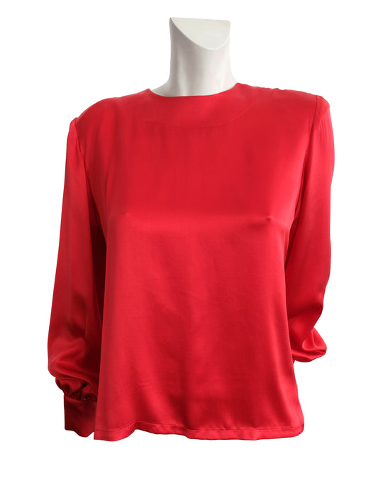 Givenchy 1980s Vintage Back Button Blouse in Red Silk Satin, UK10