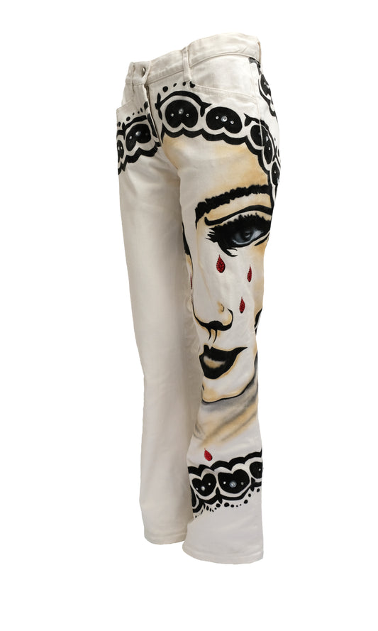 Iceberg Vintage White Hand Painted Weeping Madonna Jeans, UK10-12