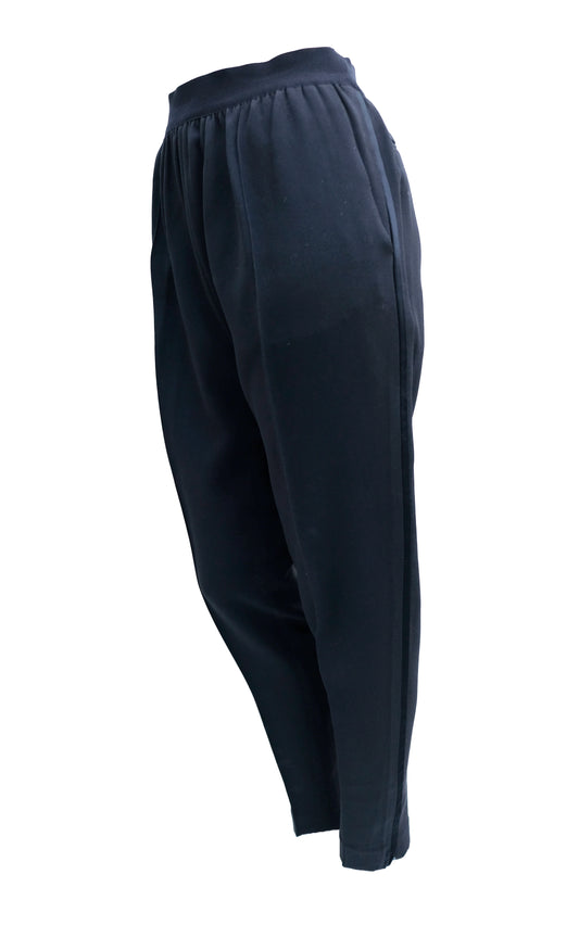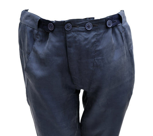 Martin Margiela Button Waist Trousers in Navy Blue Silk, UK12