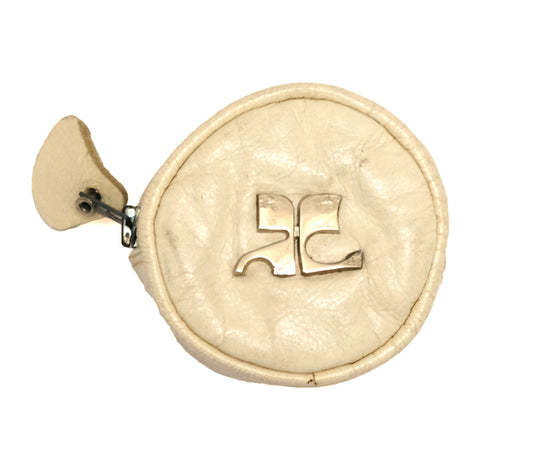 Courrèges Vintage Zipped Pouchette in Cream Leather, XS
