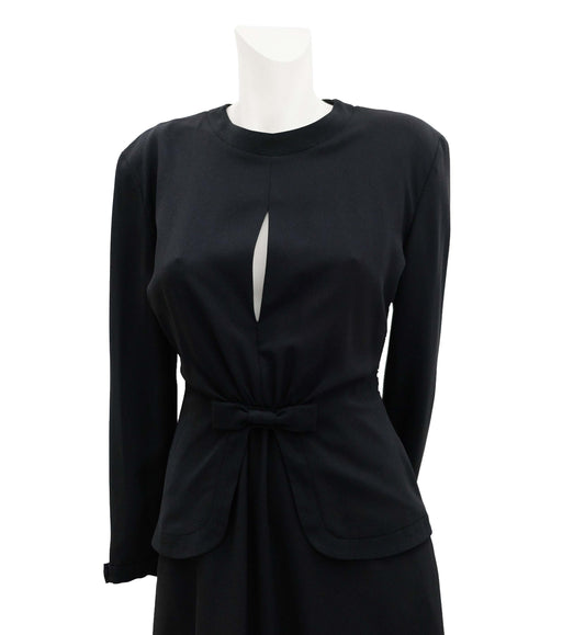 Mani 1990s Vintage Formal Dress in Black Crepe with Bow Detail, UK10
