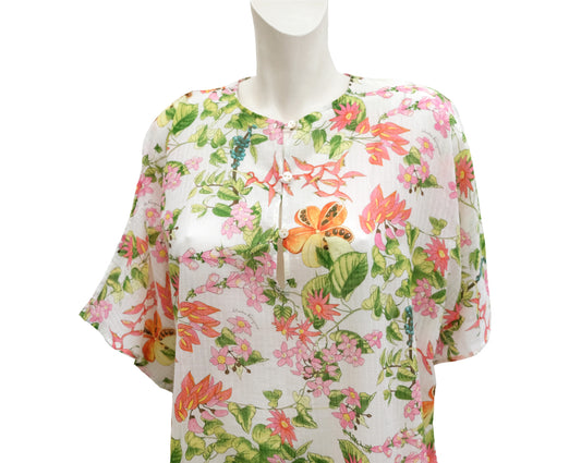 Salvatore Ferragamo Vintage Shift Dress in Semi Sheer Floral Cotton, UK12